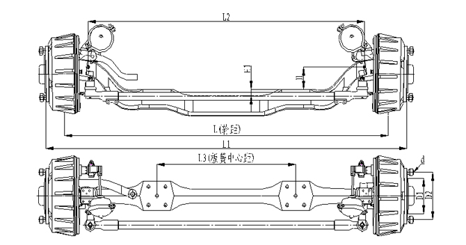 1.前軸為整體鍛造結(jié)構(gòu),采用加強(qiáng)設(shè)計,承載能力強(qiáng); 2.輪距、板簧距可靈活調(diào)整;3.車輪輪輞定位方式可采用球面定位或止口定位